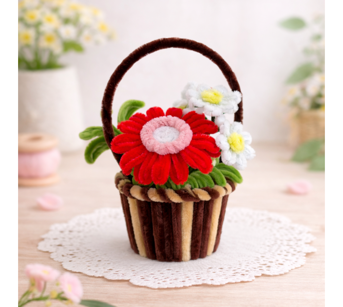 Ръчно изработена кошница с цветя от декоративна тел "Гербер"